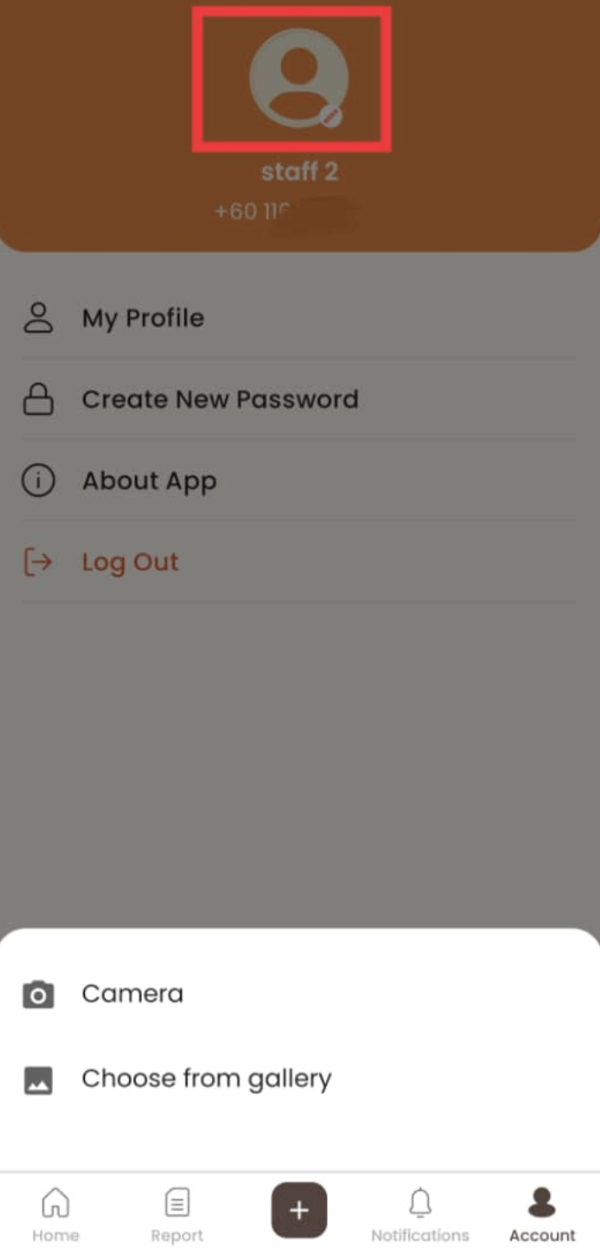 - Select “Camera” or “Choose from gallery”